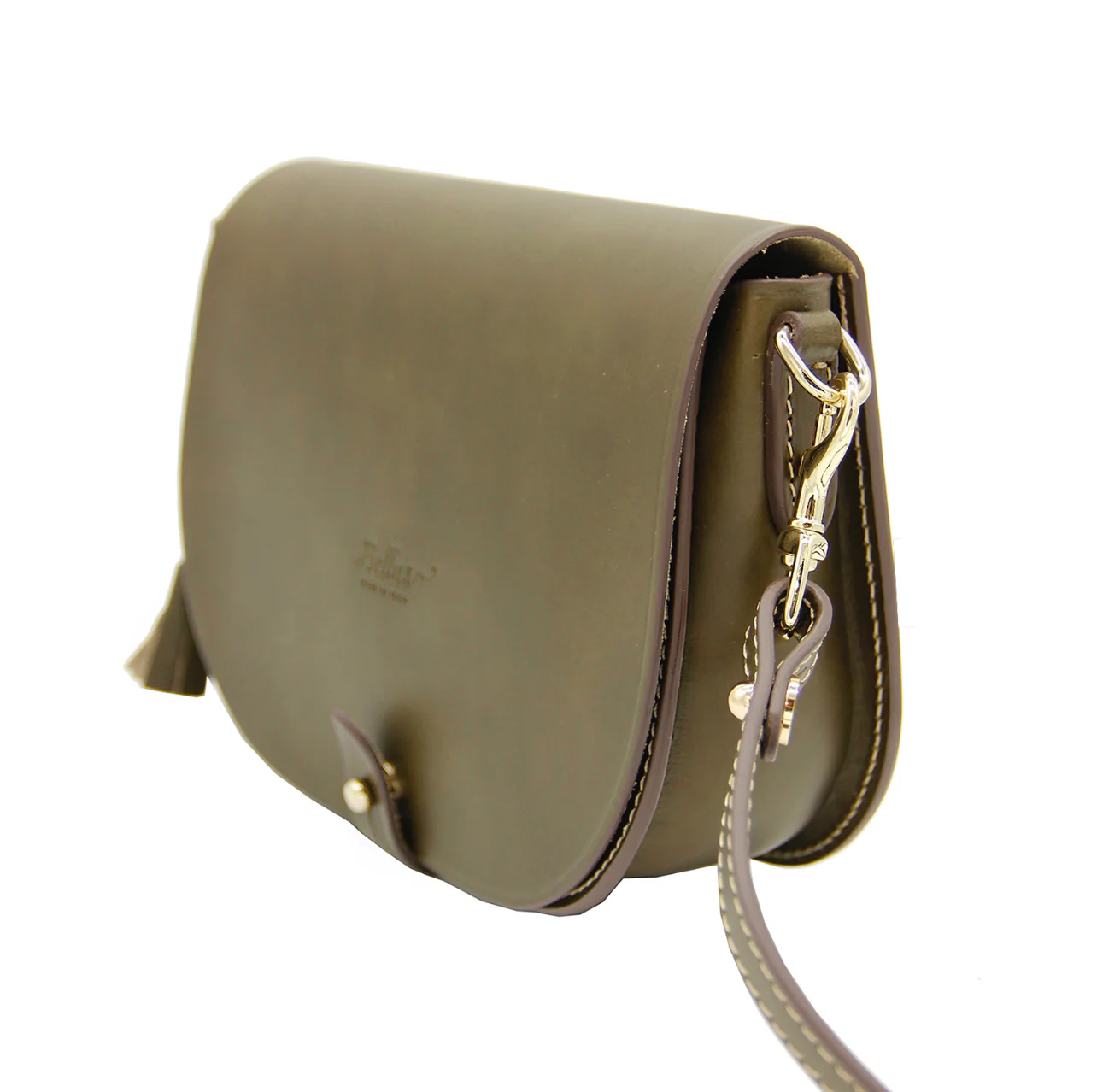 - Pflanzlich gegerbtes Leder in olivfarben