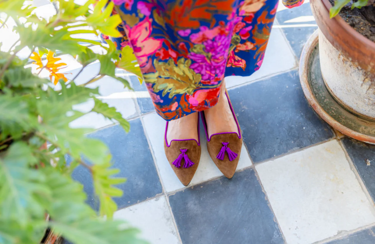 Obermaterial: 100% Wildleder in Cafebraun mit dunkellilla Tassel