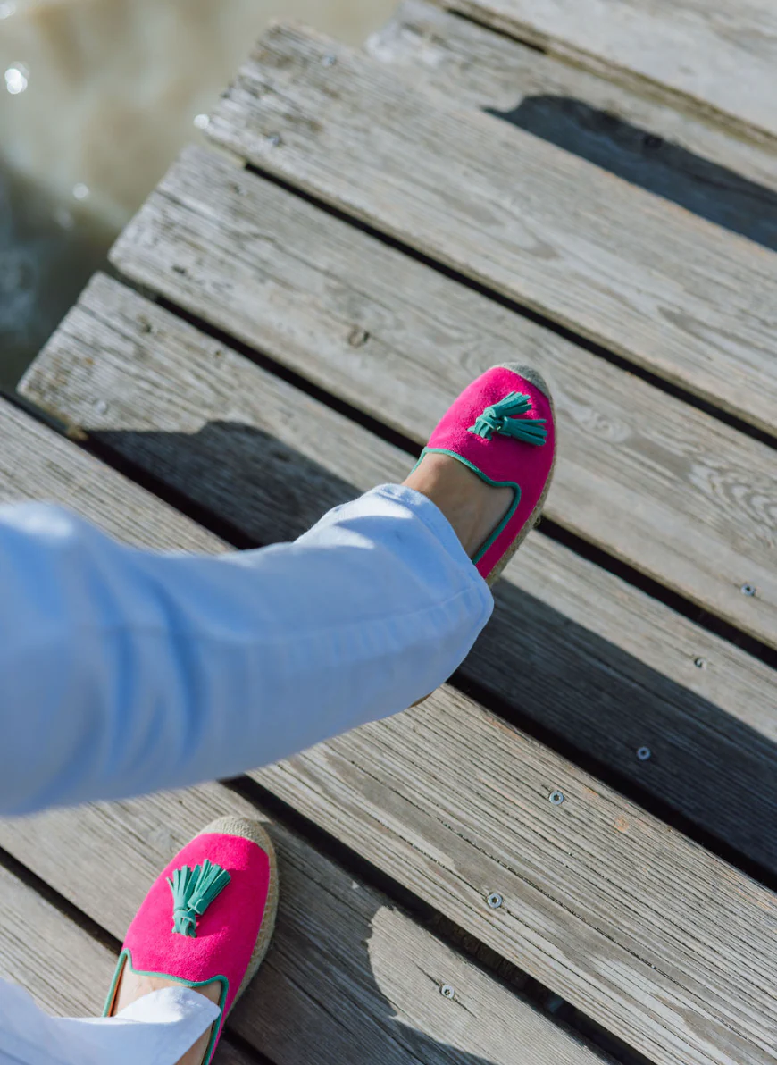 Obermaterial: 100% Wildleder in Pink mit hellgrünem Tassel