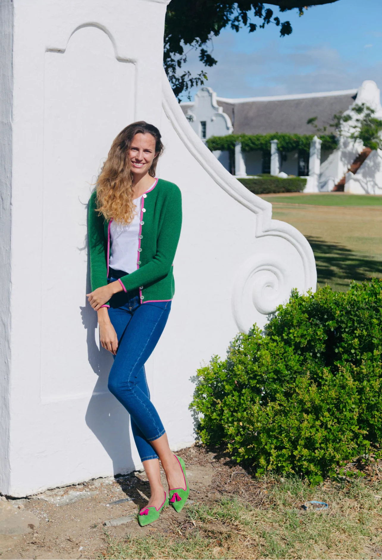 Obermaterial: 100% Wildleder in grün mit pinkem Tassel